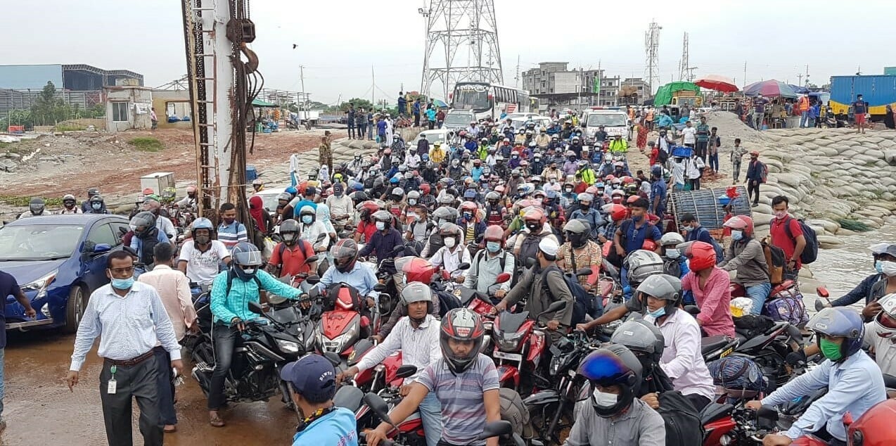 লকডাউনের মধ্যে দেশে সব ধরণের গণপরিবহন বন্ধ থাকলেও নানা প্রান্ত থেকে নানা উপায়ে ঢাকায় আসছেন মানুষ।