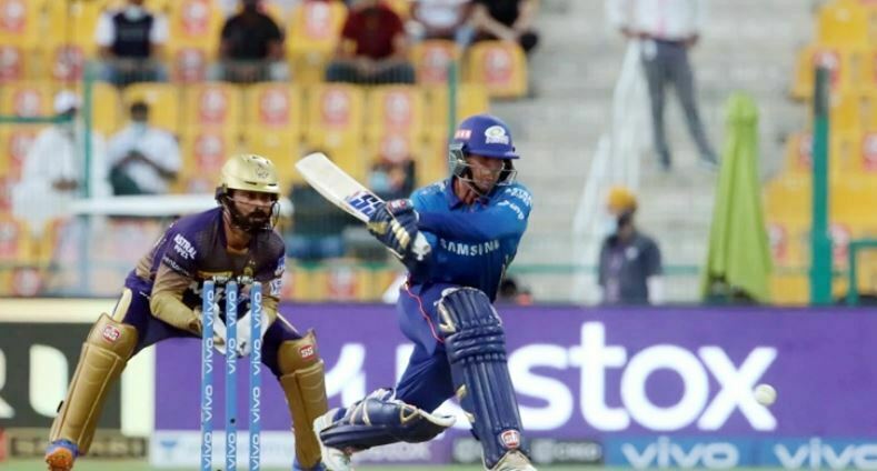 আবুধাবিতে টস হেরে ব্যাট করতে নেমে উড়ন্ত সূচনা পায় মুম্বাই। রোহিত শর্মা আর কুইন্টন ডি কক ৫৬ বলের উদ্বোধনী জুটিতে তুলে দেন ৭৮ রান। এর মধ্যে রোহিত অবশ্য কিছুটা ধীরগতির ছিলেন। ৩০ বলে ৩৩ করে সুনিল নারিনকে বিগ হিট নিতে গিয়ে বাউন্ডারিতে ধরা পড়েন মুম্বাই অধিনায়ক।