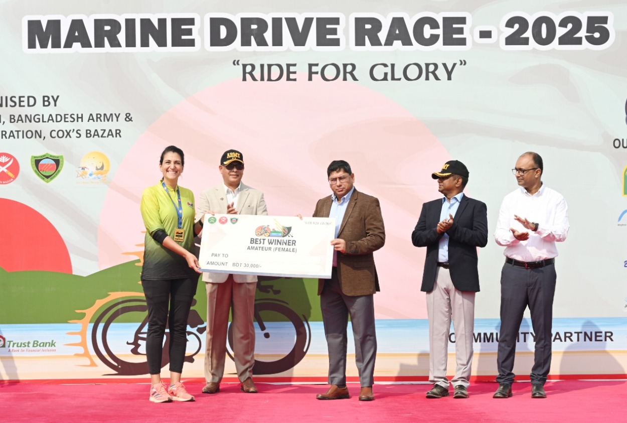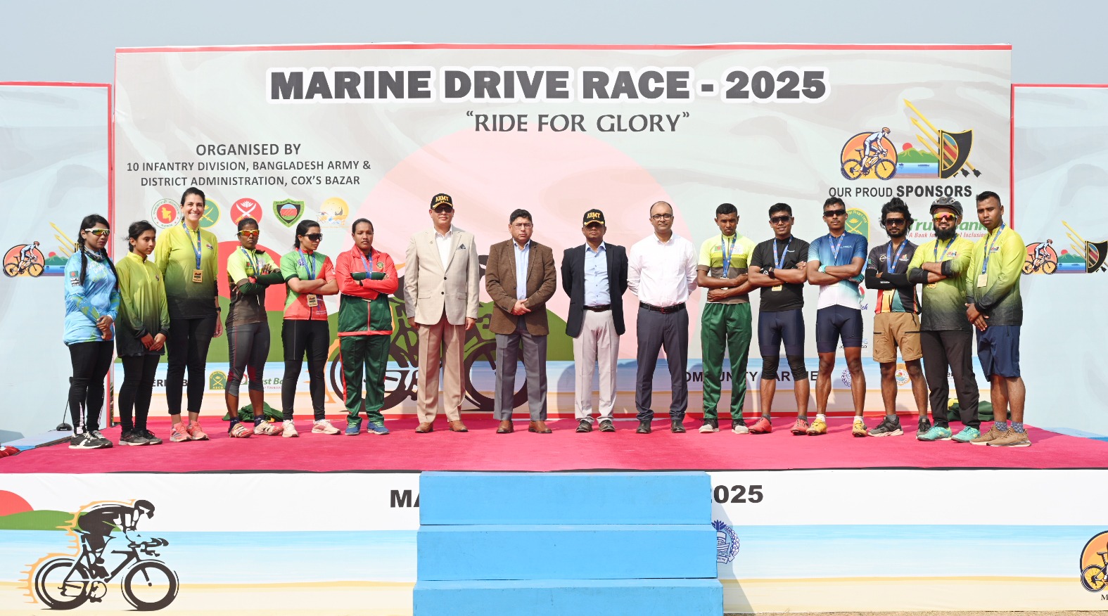 কক্সবাজারের নৈসর্গিক সৌন্দর্য বিশ্বব্যাপী উপস্থাপন এবং সর্বস্তরে সুস্থতার চেতনা জাগ্রত করার লক্ষ্যে ‘রাইড ফর গ্লোরি’ বার্তাকে ধারণ করে প্রথমবারের মত বাংলাদেশ সেনাবাহিনীর ১০ পদাতিক ডিভিশন এবং কক্সবাজার জেলা প্রশাসনের উদ্যোগে আজ মেরিন ড্রাইভ রেইস-২০২৫ (সাইক্লিং প্রতিযোগিতা) আয়োজন করা হয়।