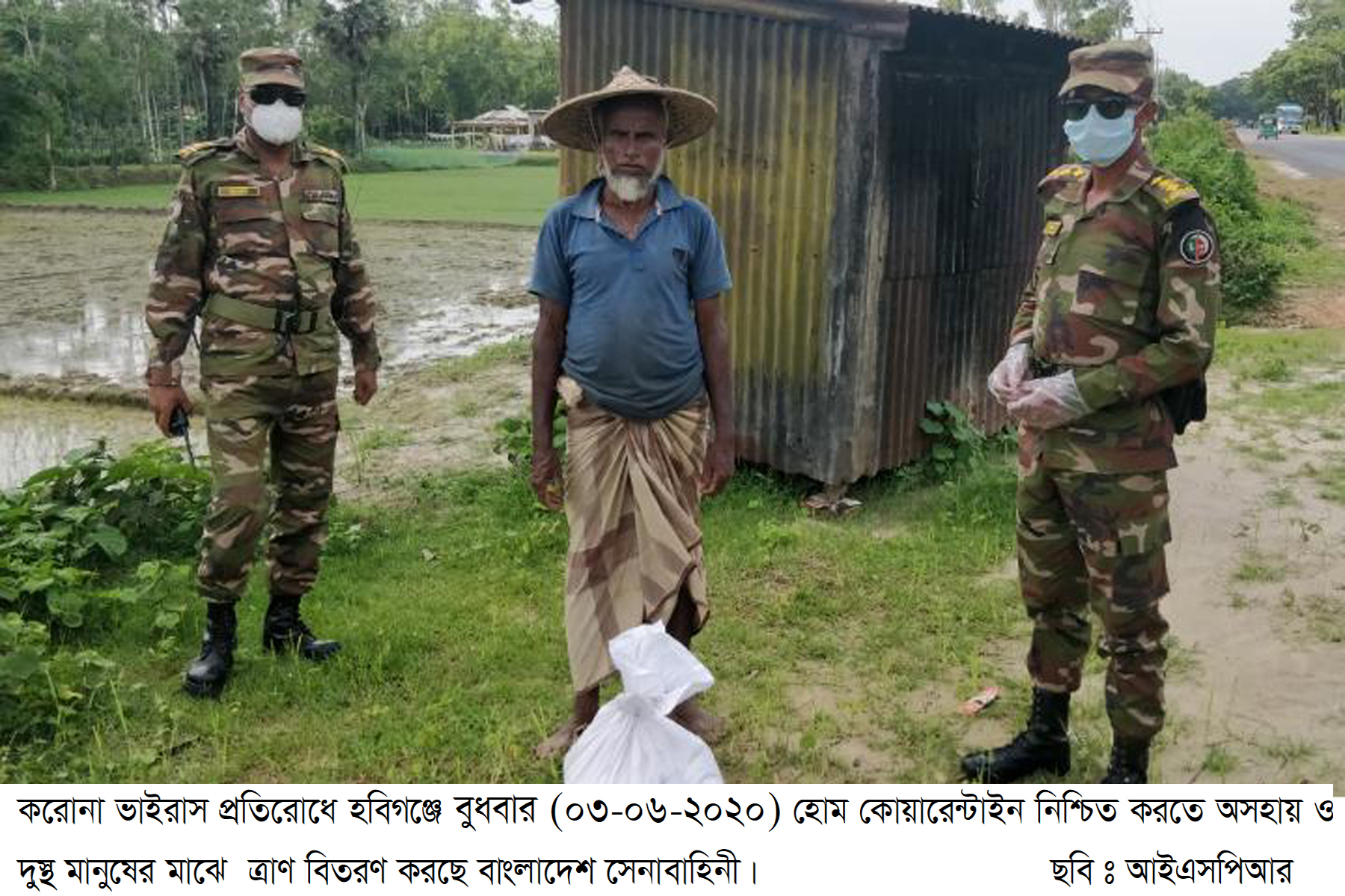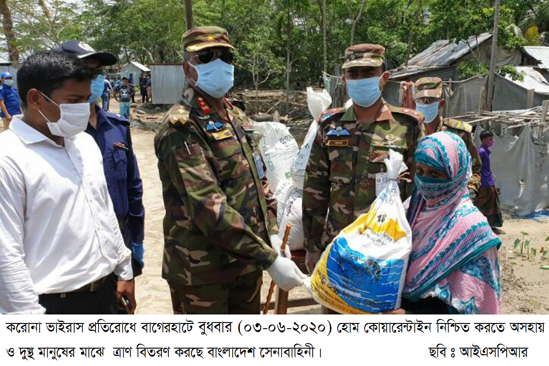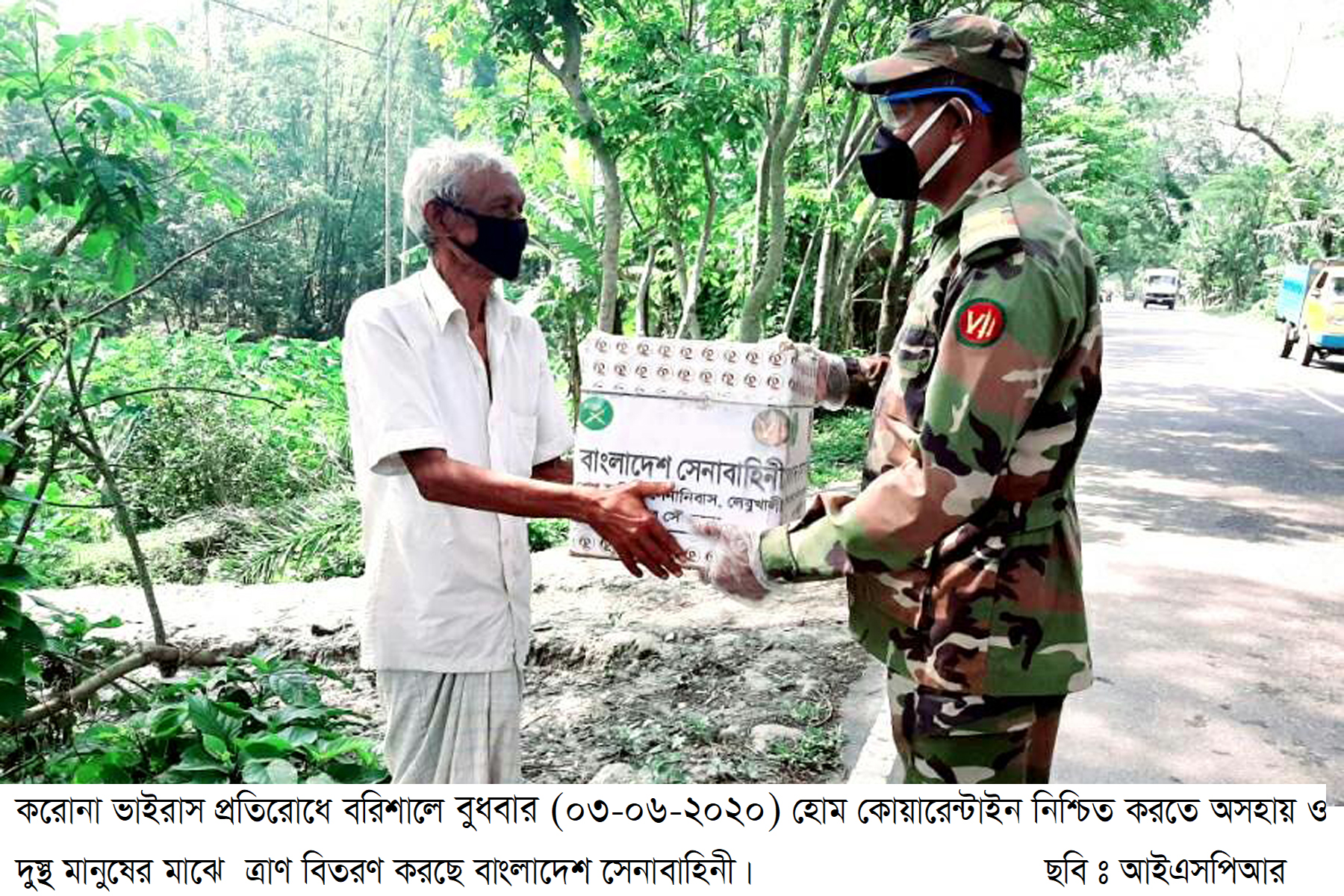জুমবাংলা ডেস্ক: করোনা দুর্যোগে দেশে কর্মহীন হয়ে পড়া অসহায় মানুষের মাঝে ত্রাণসামগ্রী বিতরণ কার্যক্রম অব্যাহত রেখেছে বাংলাদেশ সেনাবাহিনী। এছাড়া করোনার সংক্রমণ প্রতিরোধে জীবাণুমুক্তকরণ ও জনসচেতনতা কার্যক্রমও চালিয়ে যাচ্ছেন সেনাবাহিনীর সদস্যরা। আন্তঃবাহিনী জনসংযোগ পরিদপ্তরের (আইএসপিআর) পাঠানো ছবিতে দেখুন আজকের (২ জুন) ত্রাণ কার্যক্রমের কিছু চিত্র-