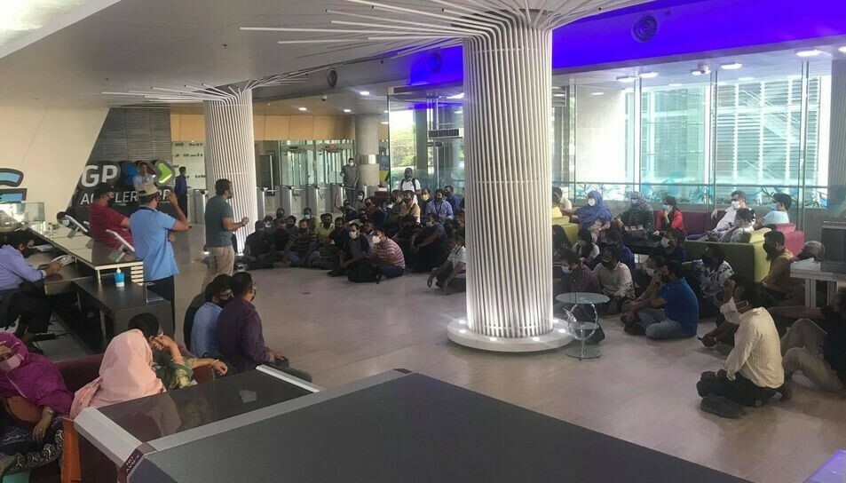 নিজস্ব প্রতিবেদক: গ্রামীণফোন এমপ্লয়িজ ইউনিয়নের (জিপিইইউ) সাধারণ সম্পাদক মিয়া মোহাম্মদ শফিকুর রহমান মাসুদকে চাকরিচ্যুত করার প্রতিবাদে সাধারণ কর্মীরা মানববন্ধন করছেন।