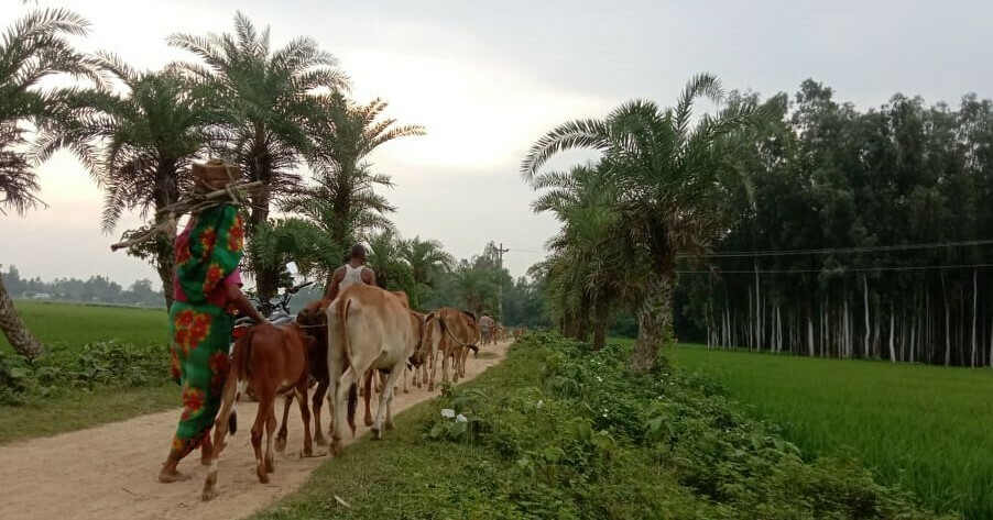 তখন বিকেলের কনে-দেখা আলো ফিকে হয়ে এসেছে। গরুর পাল খুর দিয়ে মেঠোপথের ধূলা উড়িয়ে ফিরছে গোয়ালে। সেগুলোকে ‘হু-হট-হট’ খেদিয়ে বাড়ি ফিরছিলেন একদল কিষান-কিষানি। তাদের কারও হাতে গরুশাসনের লাঠি, কারও মাথায় রান্নার জন্য সংগ্রহ করা লাকড়ি।