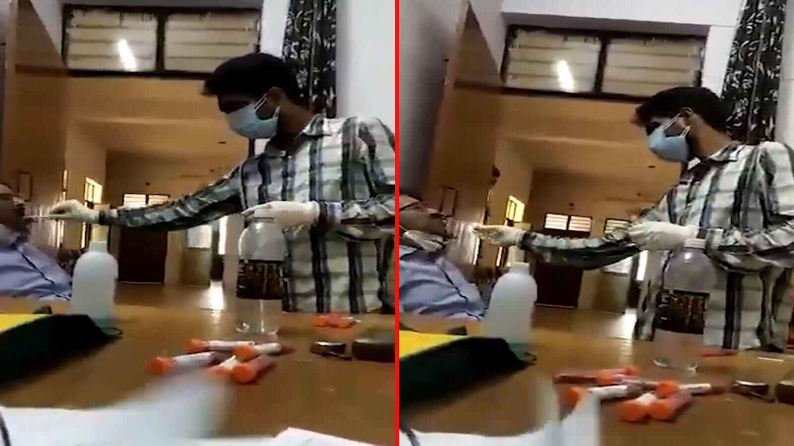 ভিডিওটিতে আরও দেখা যায়, একজন পরামর্শ দিচ্ছেন, নিজের এতগুলো নমুনা একসঙ্গে না দিতে। ভিডিওতে স্পষ্ট শোনা যাচ্ছে, ওই চিকিৎসক বলছে রাজ্যের দেওয়া টার্গেট পূরণের জন্য তিনি নিজের নমুনাই টেস্টের জন্য দিচ্ছেন।