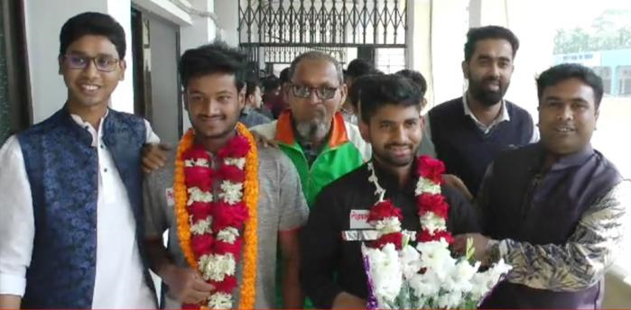 আজ বৃহস্পতিবার চাঁদপুরে উৎসবমুখর পরিবেশে বরণ করে নেওয়া হয়েছে বিশ্বকাপ জয়ী মাহমুদুল হাসান ও শামীম হোসেনকে। তাদের আসার খবর পেয়ে সকাল থেকেই লঞ্চঘাটে ভিড় করতে থাকেন ভক্ত-সমর্থকরা। সংবর্ধনা আর মিষ্টি বিতরণের মাধ্যমে এই দুজনকে ঘিরে উৎসবে মেতে ওঠেন চাঁদপুরবাসী। লঞ্চঘাটেই দুই ক্রিকেটারকে ফুলেল সংবর্ধনা দেওয়া হয়। এরপর চাঁদপুর পৌরসভা ও জেলা প্রশাসনের পক্ষ থেকে দেওয়া হয় বিশেষ সংবর্ধনা। তাদের নিয়ে শহরে বের হয় আনন্দ শোভাযাত্রা।