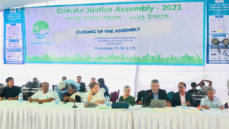 শরীফ জামিল বলেন, জলবায়ু সম্মেলন সামনে রেখে আয়োজিত সমাবেশে সারাদেশ থেকে আসা ভূক্তভোগী নানা শ্রেণি-পেশার জনগণ সমস্যা ও সংকট চিত্র তুলে ধরেছেন। দেশি-বিদেশি বিশেষজ্ঞরাও সমস্যাগুলো সম্পর্কে গুরুত্বপূর্ণ মতামত ও পরামর্শ দিয়েছেন। এর আলাকে যে প্রস্তাব চূড়ান্ত করা হয়েছে তা আগামী জলবায়ু সম্মেলনে তুলে ধরা হবে। তিনি প্রস্তাবনা বাস্তবায়নে কার্যকর উদ্যোগ গ্রহণের জন্য বাংলাদেশ সরকারসহ বিশ্ব নেতাদের প্রতি আহ্বান জানান।