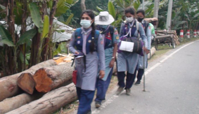 গত ১৬ নভেম্বর ঢাকার জিরো পয়েন্ট থেকে তারা পায়ে হেঁটে রওনা হয়ে ১৫০ কিলোমিটার পথ পরিভ্রমণ করেছেন। রোভার প্রোগ্রাম অনুযায়ী পরিভ্রমণকারী ব্যাজ অর্জনের জন্য তারা এই পথ পরিভ্রমণ করেন। পরিভ্রমণকারীরা হলেন, জাকিয়া ইলানুর, সাদিয়া আফরিন মীম, নাবিলা নাজ আমিন এবং মুবতাসিম ইসলাম নির্জন।