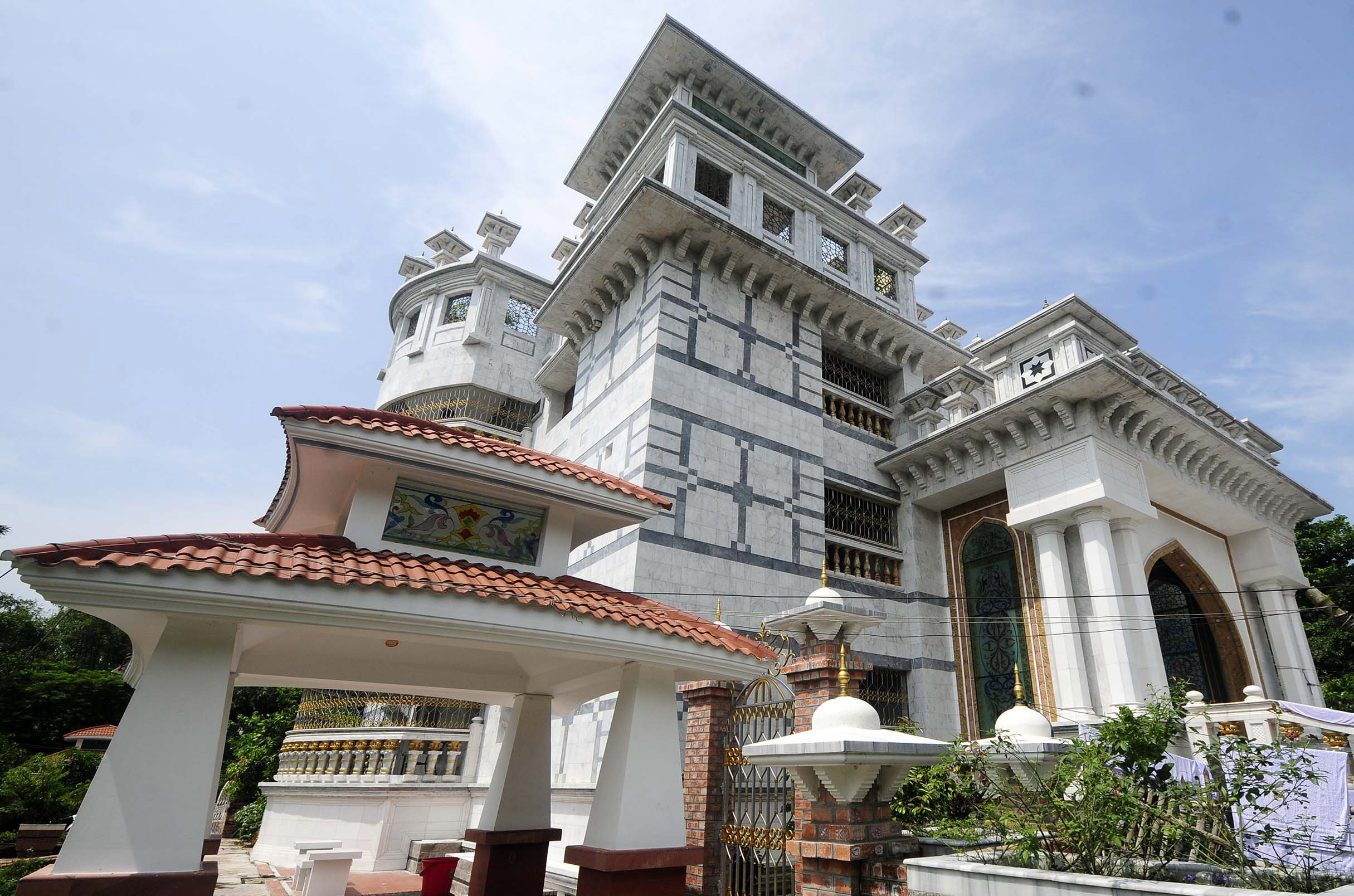 একটি চারতলা, আরেকটি তিনতলা বাড়ির ছাদে রয়েছে চারটি করে গম্বুজ। প্রধান ফটকে রয়েছে চারটি গম্বুজ। দুটি বাড়ি ছাড়াও আলাদা আকর্ষণীয় ডিজাইনের রান্না ঘর, দুটি পুকুর, বিভিন্ন প্রজাতির প্রাণিদের নিয়ে তৈরি করা একটি পার্ক এবং ফুলের বাগান।