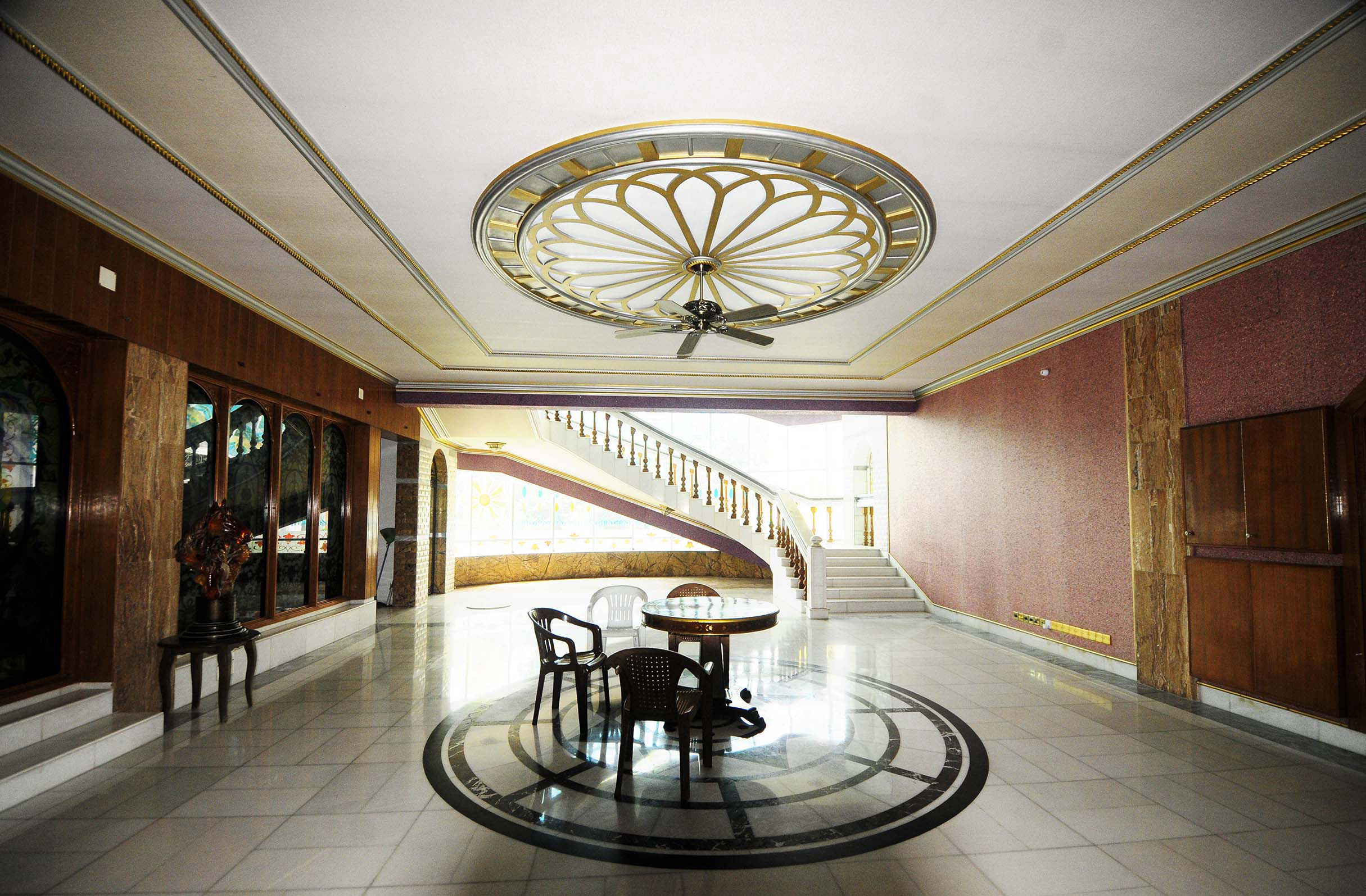 কাঠের জানালা-দরজাসহ প্রতিটি কাজই প্রাচীন নকশায় তৈরি। সবচেয়ে দামি কাঠ ব্যবহার হয়েছে এসব কাজে। শ্বেতপাথরও আনা হয়েছে বিদেশ থেকে। প্রতিটি ঘরেই এয়ার কন্ডিশনার।