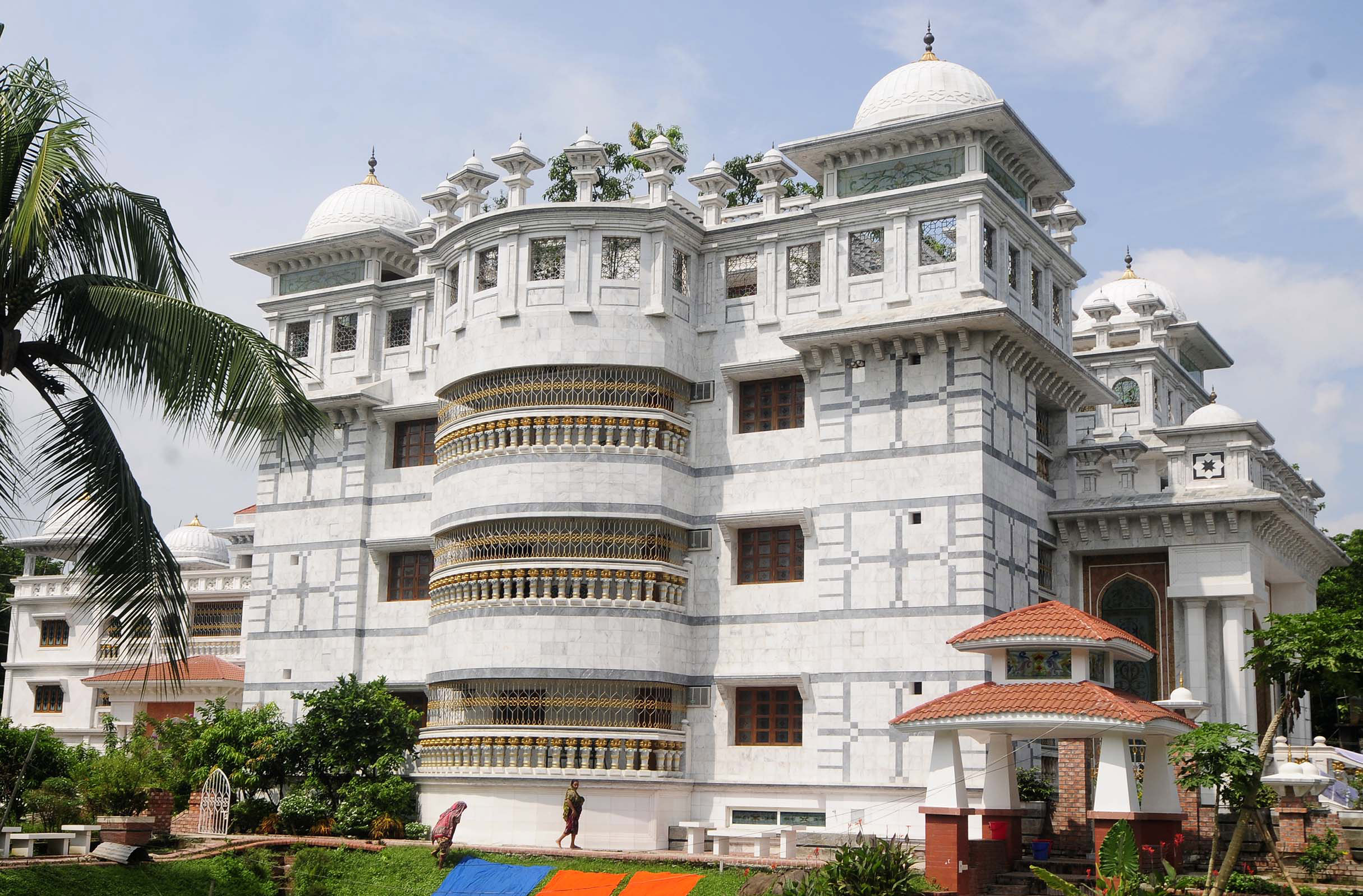 জুমবাংলা ডেস্ক : গ্রামজুড়ে নিম্ন মধ্যবিত্ত পরিবারের বসবাস। গ্রামের অধিকাংশ বাড়িতে টিনের বেড়া। এখানে উঁচু তলার ভবন করার সামর্থ্য নেই কারও। কিন্তু গ্রামে ঢুকতেই শ্বেতপাথর দিয়ে তৈরি বিশাল দুটি অট্টালিকা নজর কাড়ে সবার। কাছে গিয়ে না দেখলে মনে হবে রাজপ্রাসাদ।