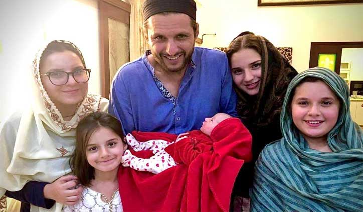 আফ্রিদি ভক্তদের সুখবর দিয়ে লিখেছেন, `সর্বশক্তিমানের অসীম আশীর্বাদ ও করুণা আমার উপর … ইতোমধ্যে চারটি কন্যা আমাকে দেওয়া হয়েছে, আমি এখন পঞ্চম কন্যা সন্তানের বাবা। আলহামদুলিল্লাহ। আমার শুভাকাঙ্ক্ষীদের সাথে এই সুসংবাদটি ভাগ করে নিচ্ছি।‘