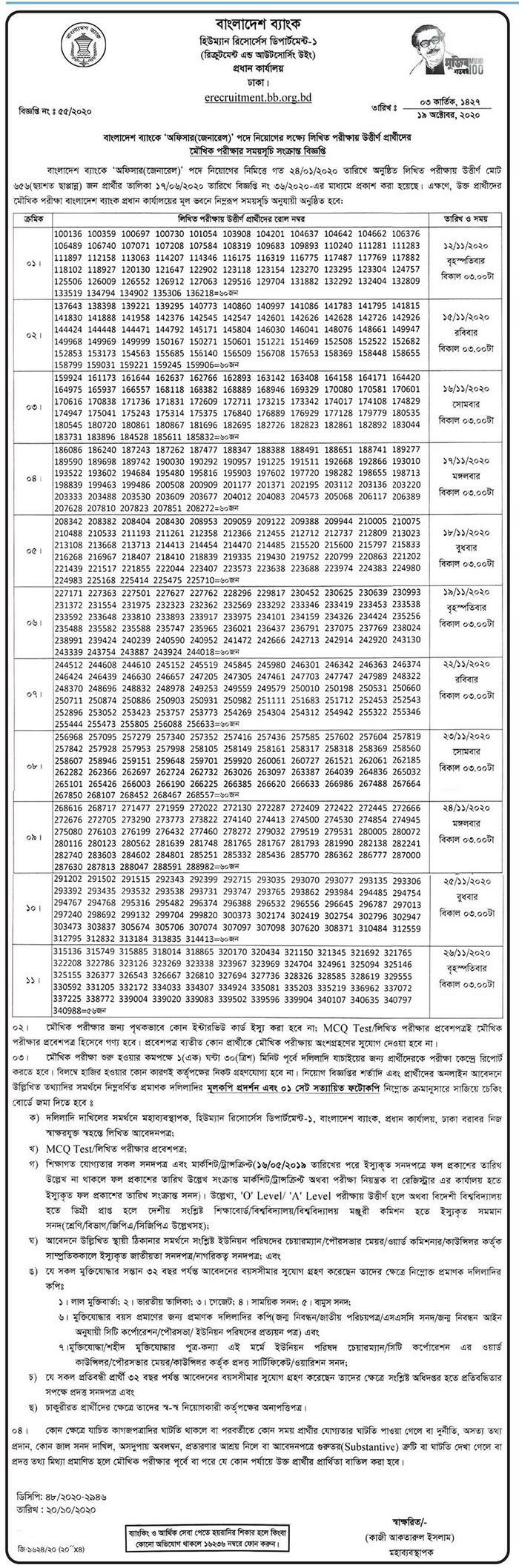 বাংলাদেশ ব্যাংকে অফিসার পদে মৌখিক পরীক্ষার সময়সূচি প্রকাশ