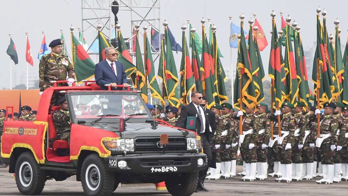 সাধারণত বিজয় দিবসে জাতীয় প্যারেড স্কয়ারে অনুষ্ঠিত সম্মিলিত সামরিক কুচকাওয়াজে বাংলাদেশ সেনাবাহিনী, বাংলাদেশ নৌবাহিনী ও বাংলাদেশ বিমানবাহিনীর সদস্যরা যোগ দেন। কুচকাওয়াজের অংশ হিসেবে সালাম গ্রহণ করেন রাষ্ট্রপতি। এ সময় প্রধানমন্ত্রীসহ মন্ত্রিপরিষদ সদস্য, বিচারপতি, তিন বাহিনীর প্রধান, সংসদ সদস্য, কূটনৈতিক ও আমন্ত্রিত বিদেশি অতিথিরা উপস্থিত থাকেন।