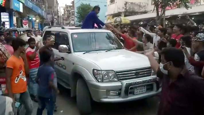 বিনোদন ডেস্ক: করোনায় বন্ধ থাকার পর শুক্রবার থেকে দেশের সব সিনেমা হল খুলে দেওয়া হয়েছে। আর বন্ধ থাকার পর প্রথম মুক্তিপ্রাপ্ত ছবি হিসেবে চলছে হিরো আলমের ‘সাহসী হিরো আলম’। ছবি মুক্তি পর রাজধানীর বিভিন্ন প্রেক্ষাগৃহ প্রাডো গাড়িতে ঘুরে বেড়াচ্ছেন হিরো আলম। আর দু’পাশে শত শত মানুষ। এমনই এক ভিডিও এখন ঘুরে বেড়াচ্ছে সামাজিক যোগাযোগ মাধ্যম ফেসবুকে।