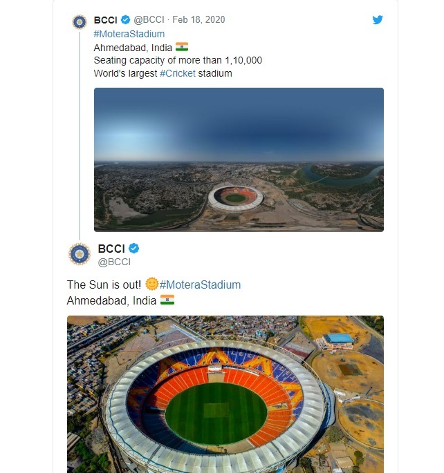 মঙ্গলবারই মোতেরার বার্ডস আই ভিউ ছবি পোস্ট করে বিসিসিআই লিখেছে, বিশ্বের বৃহত্তম ক্রিকেট স্টেডিয়াম।