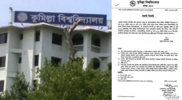 কুবি প্রতিনিধি: বিশ্বব্যাপী মহামারী আকারে ছড়িয়ে পড়া করোনাভাইরাস আতঙ্কে এবার বন্ধ ঘোষণা করা হয়েছে কুমিল্লা বিশ্ববিদ্যালয় (কুবি)। আগামী ১৮ মার্চ (বুধবার) থেকে ৩১ মার্চ (মঙ্গলবার) পর্যন্ত বিশ্ববিদ্যালয়ের সব ধরণের কার্যক্রম বন্ধ থাকবে। একইসাথে বন্ধ থাকবে আবাসিক হলগুলোও। বুধবার সকাল ১০ টার ভিতরে শিক্ষার্থীদের হল ছাড়তে হবে।