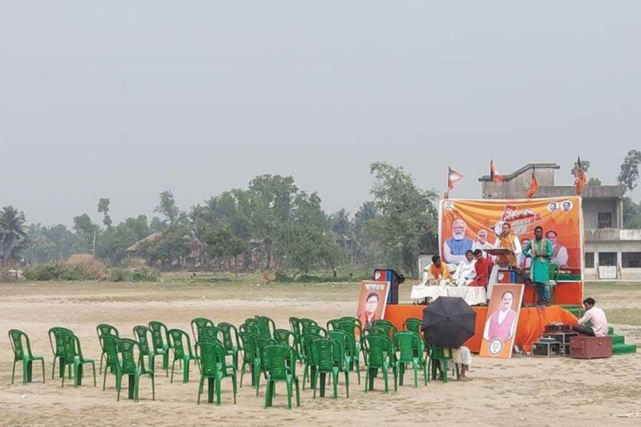 বাংলায় যে বিজেপির কোনও জায়গা নেই, এটাই দেখানো হয়েছে মিমে। ফাঁকা মাঠে বিজেপির সভা হচ্ছে- এমন একটি ছবির নিচে ক্যাপশন, ‘ইয়ে বিজেপি ফর বেঙ্গল হ্যায়। ইয়ে উনকি জনসভা হ্যায়। ঔর ইঁহা ইনকি পাওরি হো রহি হ্যায়।