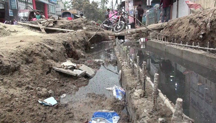 শহরের প্রধান এলাকা মুজিব সড়কের পাশের দোকানিরা জানান, শহরের ড্রেনগুলো সংস্কারে কাজ চলছে। এতে ড্রেনের ময়লা ও আবর্জনাযুক্ত উন্মুক্ত পানিতে গিজগিজ করছে মশা।