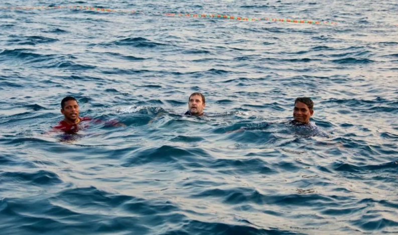 এমনকি জেলেদের সঙ্গে মাছ ধরতে বেশ কয়েকবার সমুদ্রে জালও ফেলেন তিনি। এরপরেই হঠাৎ করে জেলেদের মতো নৌকা থেকে পানিতে লাফিয়ে পড়েন রাহুল গান্ধী।