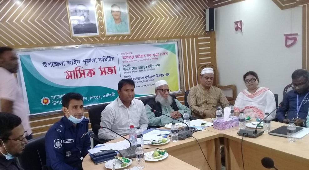 শিবপুর উপজেলা নির্বাহী অফিসার মোহাম্মদ কাবিরুল ইসলাম খানের সভাপতিত্বে সভায় বক্তৃতা রাখেন আইন শৃঙ্খলার উপদেষ্টা শিবপুর উপজেলা পরিষদের চেয়ারম্যান ও উপজেলা আওয়ামী লীগের সভাপতি আলহাজ্ব হারুনুর রশীদ খান।