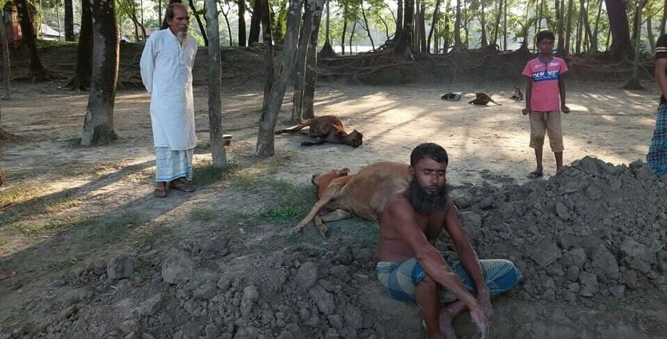 একমাত্র উপার্জনের অবলম্বন হারিয়ে আগামীদিনগুলোতে কিভাবে সংসারের খরচ যোগান দিবেন এই দুশ্চিন্তায় গরু দুটিকে মাটিচাপা দেওয়ার আগে বিলাপ করতে থাকেন মনছুর।