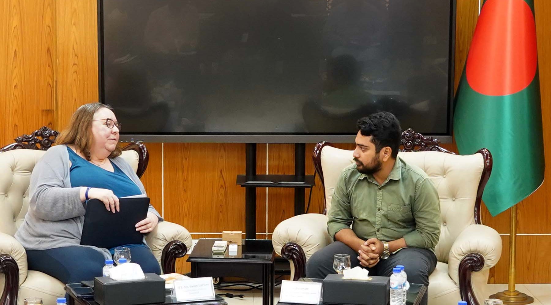 সাক্ষাৎকালে উপদেষ্টা নাহিদ ইসলাম দুই দেশের মধ্যেকার বন্ধুত্বপূর্ণ সম্পর্ক এবং বাংলাদেশের বিভিন্ন উন্নয়নমূলক খাতে পারস্পরিক অংশীদারিত্ব ও সহযোগিতার জন্য যুক্তরাষ্ট্রকে ধন্যবাদ জানান।