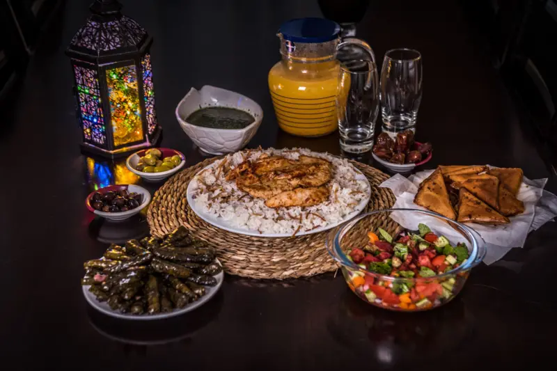 রমজানে তাদের ইফতার টেবিলে থাকে নানা ধরনের খাবারের সমারোহ। তার মাঝে উল্লেখযোগ্য হলো ‘আতায়েফ’ ও ‘কুনাফা’। আতায়েফ হলো এক ধরনের প্যানকেক ও কুনাফা এক ধরনের সিরাপ।