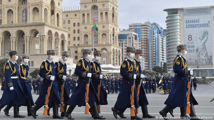 আজারবাইজানে বিজয় উৎসবে সেনার প্যারেড।