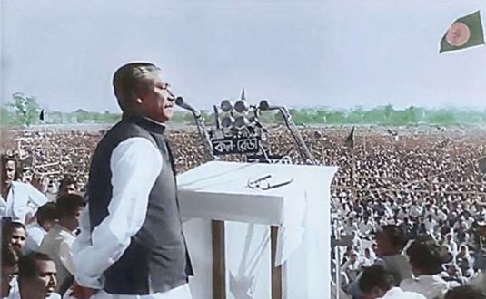 বঙ্গবন্ধু দরাজ গলায় তার ভাষণ শুরু করেন, ‘ভাইয়েরা আমার, আজ দুঃখ-ভারাক্রান্ত মন নিয়ে আপনাদের সামনে হাজির হয়েছি…।’ এরপর জনসমুদ্রে দাঁড়িয়ে বাংলা ও বাঙালির স্বাধীনতার মহাকাব্যের কবি ঘোষণা করেন- ‘এবারের সংগ্রাম আমাদের মুক্তির সংগ্রাম…, এবারের সংগ্রাম স্বাধীনতার সংগ্রাম।’