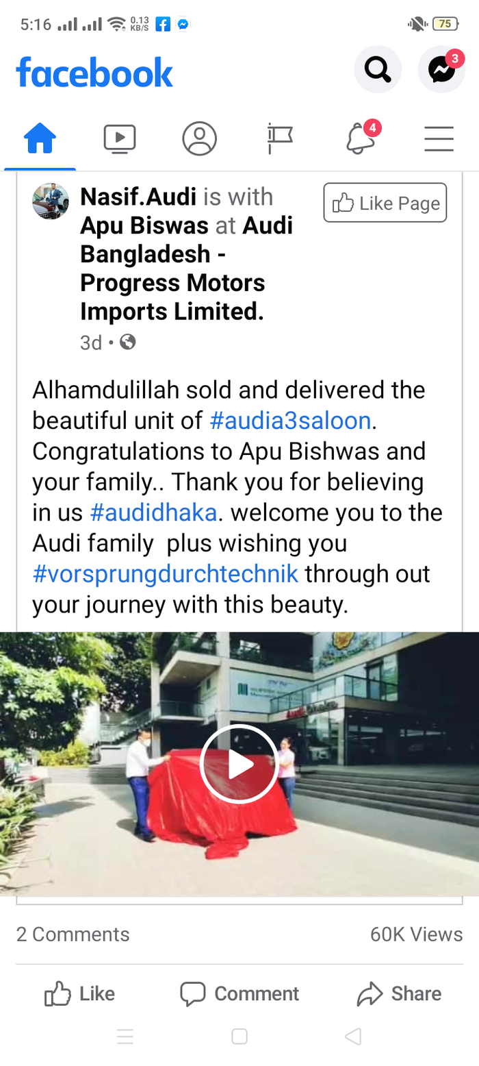 নাফিজ আহমেদের ফেসবুক পেইজে অপুর গাড়ি কেনার ভিডিও