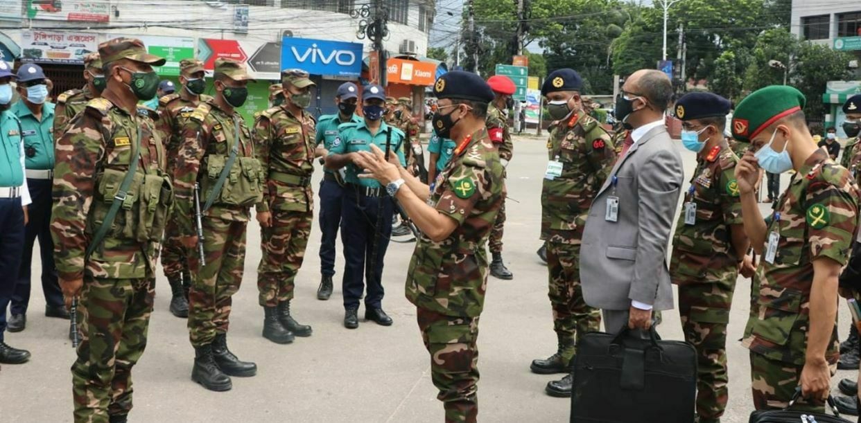 করোনাভাইরাসের প্রাদুর্ভাব পুনরায় বৃদ্ধি পাওয়ায় সরকারের সিদ্ধান্ত মোতাবেক গত ১ জুলাই হতে বেসামরিক প্রশাসন ও আইন শৃঙ্খলা রক্ষাকারী বাহিনীসমূহকে সহায়তার উদ্দেশ্যে দেশব্যাপী সেনাবাহিনী মোতায়েন করা হয়েছে। এ প্রেক্ষিতে ৫৫ পদাতিক ডিভিশনের সেনাসদস্যগণ খুলনা ও ঢাকা বিভাগের ১১টি জেলায় জনসাধারণের মাঝে কোভিড সচেতনতা বৃদ্ধির লক্ষ্যে নিয়মিত টহল পরিচালনার পাশাপাশি সরকার কর্তৃক জারীকৃত বিধি-নিষেধ যথাযথভাবে প্রয়োগ নিশ্চিতকল্পে বেসামরিক প্রশাসনের সাথে সমন্বয়ের মাধ্যমে বিবিধ কার্যক্রম পরিচালনা করছে।