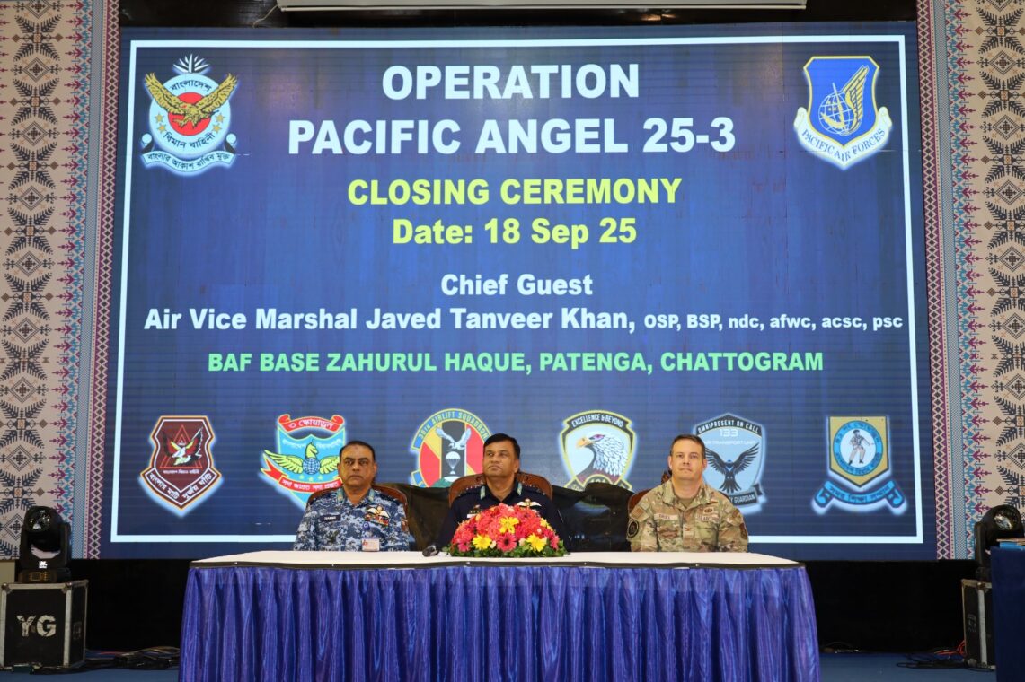 সশস্ত্র বাহিনী বিভাগের নির্দেশনা ও বাংলাদেশ বিমান বাহিনীর ব্যবস্থাপনায় বাংলাদেশ বিমান বাহিনী ও যুক্তরাষ্ট্রের প্যাসিফিক এয়ার ফোর্সের অংশগ্রহণে সাত দিনব্যাপী ‘অপারেশন প্যাসিফিক এঞ্জেল ২৫-৩’শীর্ষক যৌথ অনুশীলন গতকাল (১৮ সেপ্টেম্বর) বাংলাদেশ বিমান বাহিনী ঘাঁটি জহুরুল হক-এ সমাপ্ত হয়েছে।