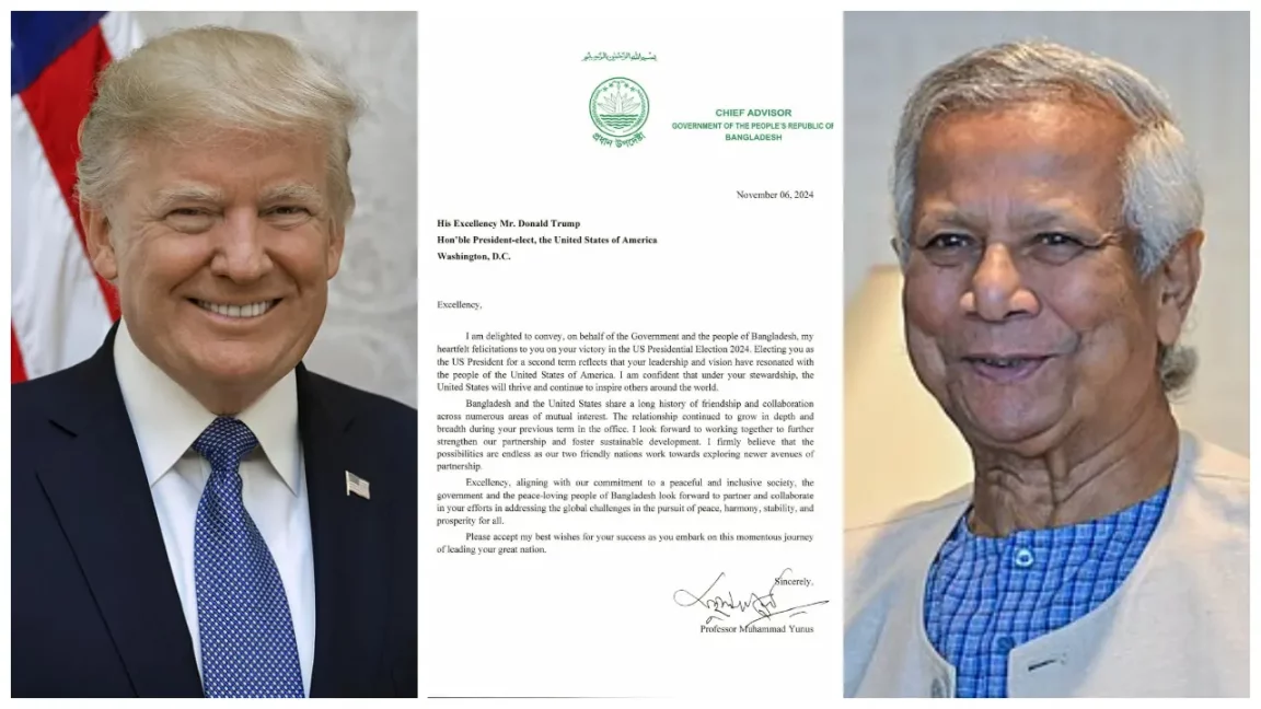 শুভেচ্ছা বার্তায় ড. ইউনূস বলেন, ‘মার্কিন প্রেসিডেন্ট নির্বাচনে বিজয়ের জন্য আপনাকে বাংলাদেশ সরকার এবং জনগণের পক্ষ থেকে আন্তরিক অভিনন্দন।’