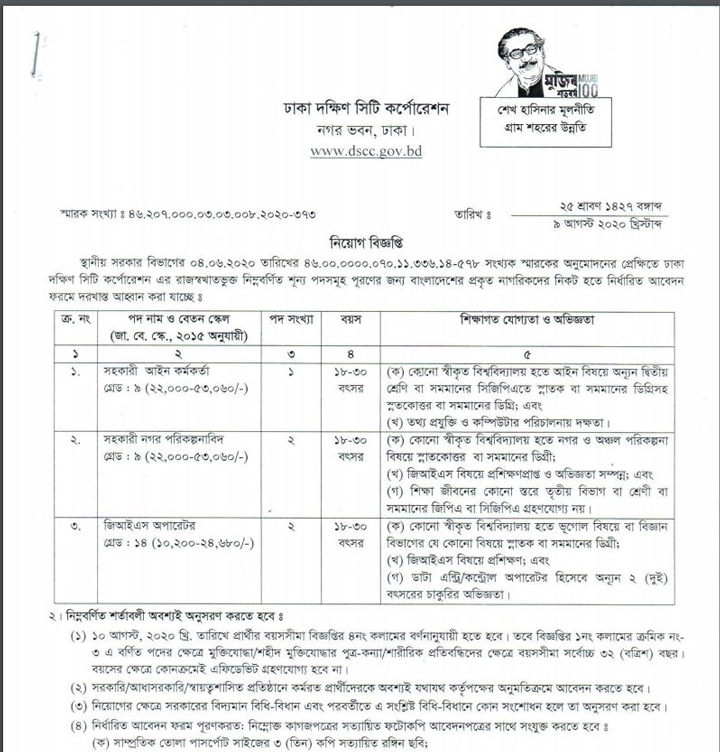 ঢাকা দক্ষিণ সিটি কর্পোরেশনে চাকরির সুযোগ