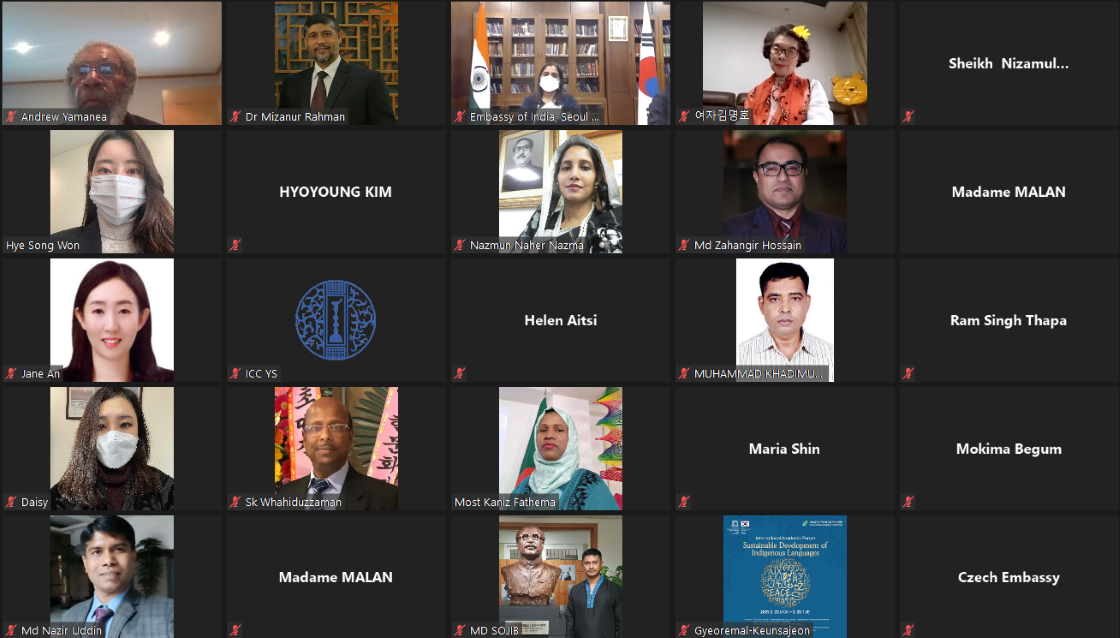 ওয়েবিনারে দক্ষিণ কোরিয়ার পররাষ্ট্র মন্ত্রণালয়ের মহাপরিচালক, কেএনসিইউ-এর মহাসচিব, পূর্ব তিমুর, পাপুয়া নিউ গিনি, ভারত ও দক্ষিণ আফ্রিকার রাষ্ট্রদূতগণ, আন্তর্জাতিক মাতৃভাষা ইন্সটিটিউটের মহাপরিচালক এবং গিওরমাল-কেওনসাজিওন-এর মহাসচিবসহ বিভিন্ন দেশের কূটনৈতিকগণ অংশহগ্রহণ করেন।