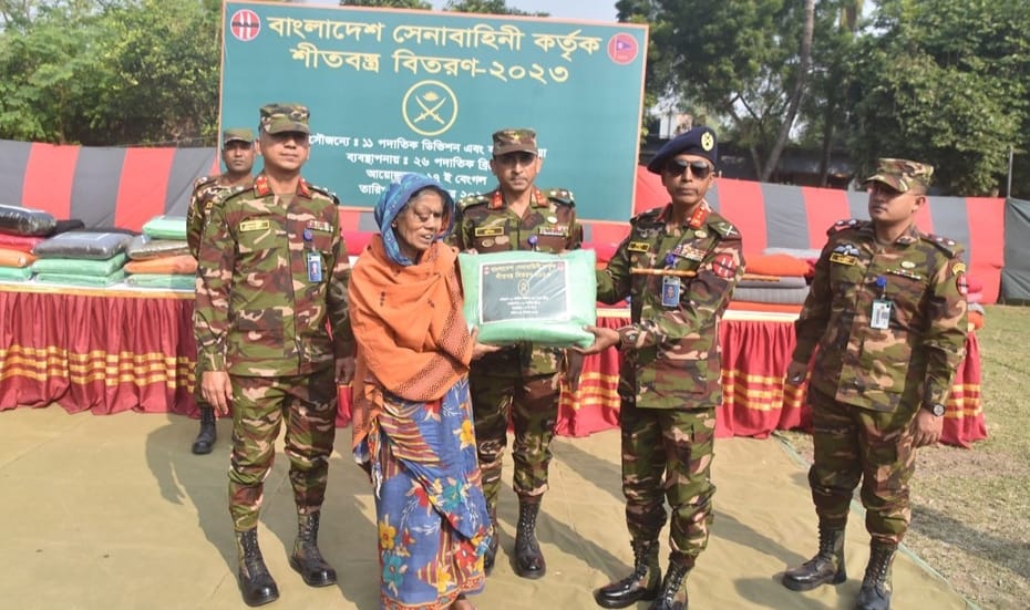 সোমবার (১৮ ডিসেম্বর) শীতার্ত মানুষের মাঝে সেনাবাহিনী প্রধান এস এম শফিউদ্দিন আহমেদের নির্দেশে ৬০০ মানুষের মাঝে এ কম্বল বিতরণ করা হয়।