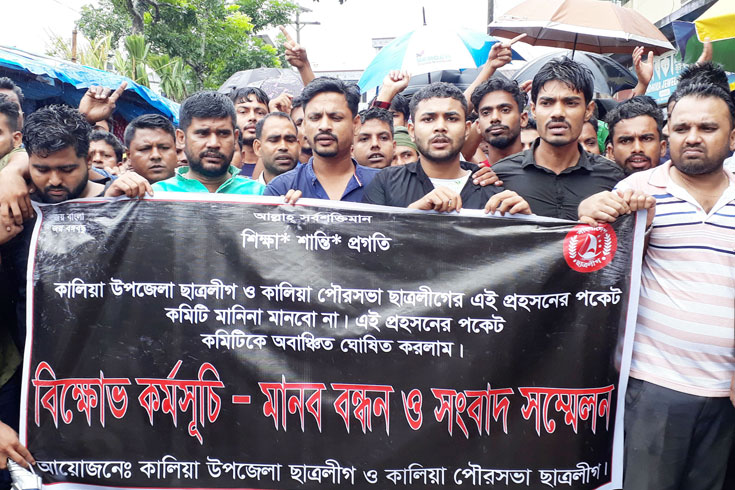 ২৩ অক্টোবর জেলা ছাত্রলীগ ঘোষিত কমিটিকে প্রত্যাখান করে তা বাতিলে বিক্ষোভ সমাবেশ করেন বিক্ষু্ব্ধ ও পদবঞ্চিত নেতাকর্মীরা। পরে মো. ইয়ামিন বিশ্বাসকে সভাপতি ও মহিবুল ইসলাম অনিককে সাধারণ সম্পাদক করে কালিয়া উপজেলা কমিটি এবং নিয়ামত হোসেন প্রাপ্তকে সভাপতি এবং রাইসুল ইসলাম হৃদয়কে সাধারণ সম্পাদক করে কালিয়া পৌর কমিটি ঘোষণা করেন বিক্ষুব্ধ ও পদবঞ্চিতরা।