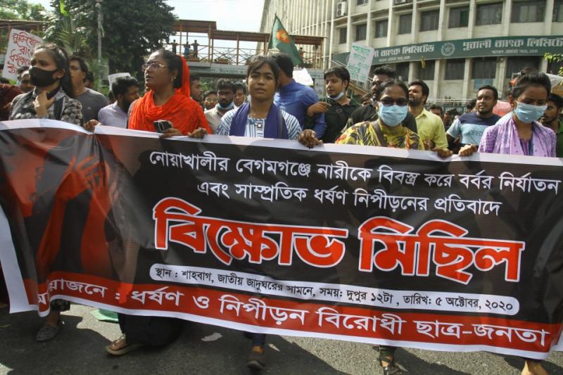 নোয়াখালীর বেগমগঞ্জ উপজেলায় এক গৃহবধূকে বিবস্ত্র করে নির্যাতনের ঘটনায় জড়িতদের গ্রেফতার ও কঠোর শাস্তির দাবিতে এক বিক্ষোভ সমাবেশে আজ সোমবার (৫ অক্টোবর) দুপুরে এই অভিযোগ করেন তিনি। বাংলাদেশ ছাত্র অধিকার পরিষদ এই বিক্ষোভ মিছিলের আয়োজন করে।