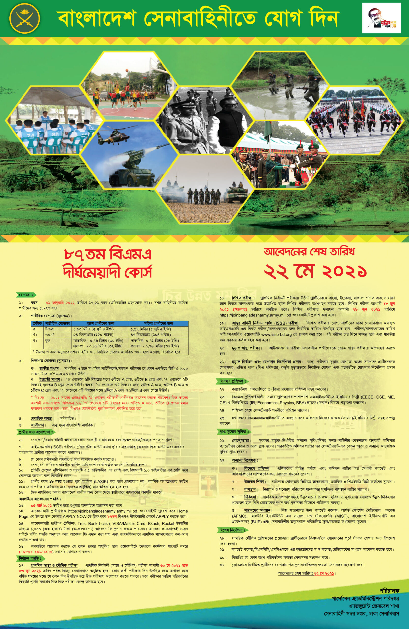 পদের নাম : ৮৭তম বিএমএ দীর্ঘমেয়াদী কোর্স