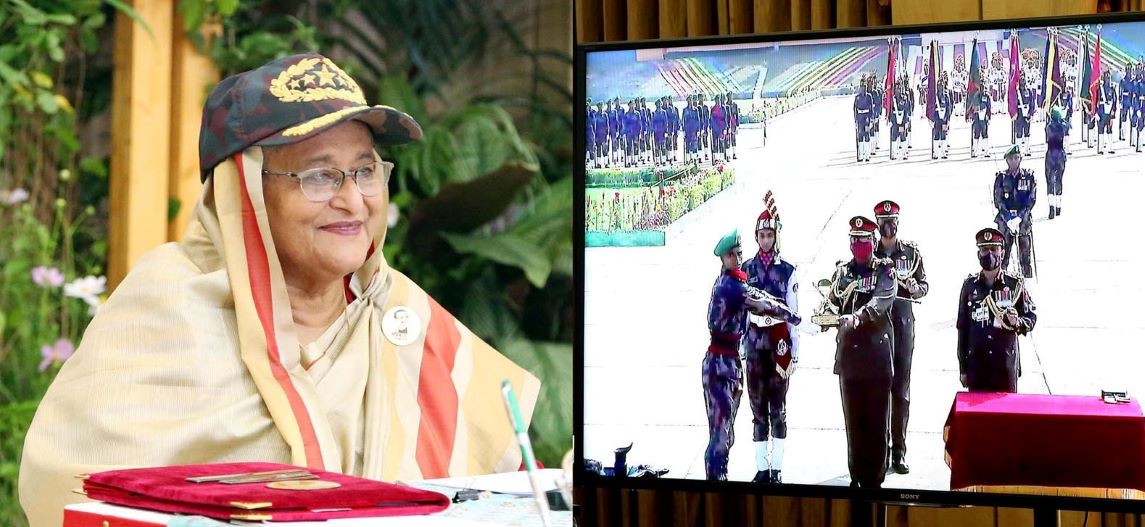 তিনি গণভবন থেকে ভিডিও কনফারেন্সের মাধ্যমে বর্ডার গার্ড ট্রেনিং সেন্টার এন্ড কলেজ, সাতকানিয়া, চট্টগ্রামের মূল অনুষ্ঠানে ভার্চুয়ালি যোগ দেন।