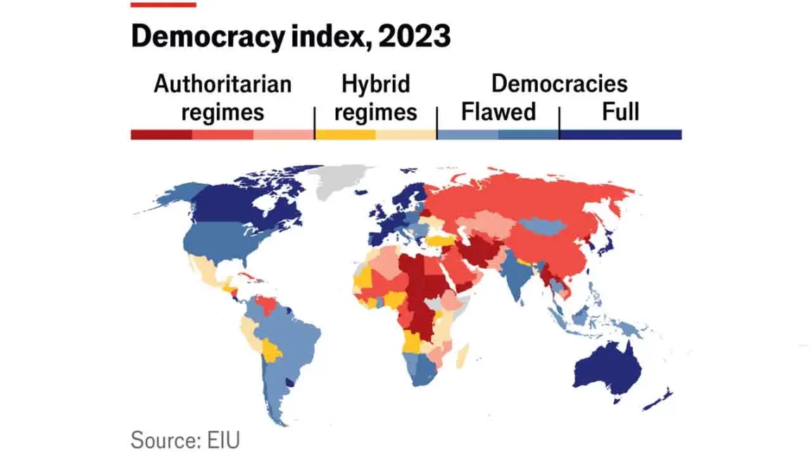 জুমবাংলা ডেস্ক : ২০২৩ সালের বৈশ্বিক গণতান্ত্রিক সূচক প্রকাশ করেছে লন্ডনভিত্তিক দ্য ইকোনমিস্টের ইকোনমিক ইনটেলিজেন্স ইউনিট (ইআইইউ)। সূচকে বাংলাদেশের অবস্থার অবনতি হয়েছে।