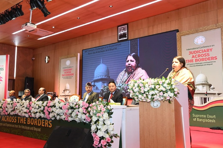 আজ রাজধানী ঢাকার সুপ্রীমকোর্ট অডিটোরিয়ামে বাংলাদেশ সুপ্রীমকোর্ট কর্তৃক আয়োজিত ‘ইন্টারন্যাশনাল কনফারেন্স অন জুডিশিয়ারি এক্রোস দ্য বর্ডারস’ অনুষ্ঠানে প্রধান অতিথির বক্তব্যে এসব কথা বলেন তিনি।