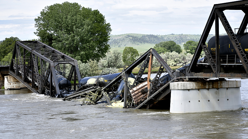 বার্তা সংস্থা রয়টার্সের প্রতিবেদনে জানানো হয়, স্থানীয় সময় সকাল ৬টায় গরম অ্যাসফল্ট এবং তরল সালফার নিয়ে একটি পণ্যবাহী ট্রেন ইয়েলোস্টোন নদীর সেতু পার হচ্ছিল। সেতুর মাঝামাঝি পৌঁছতেই ওয়াগন নিয়ে হুড়মুড়িয়ে নদীতে গিয়ে পড়ে পণ্যবাহী ট্রেনটি।