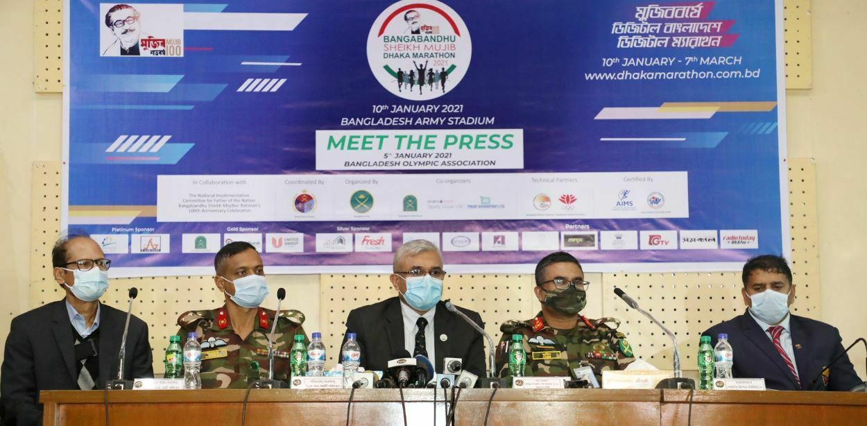 স্পোর্টস ডেস্ক:  জাতির পিতা বঙ্গবন্ধু শেখ মুজিবুর রহমানের জন্মশতবার্ষিকী উপলক্ষে বঙ্গবন্ধুর ঐতিহাসিক স্বদেশ প্রত্যাবর্তন দিবসে (১০ জানুয়ারি) বাংলাদেশ সেনাবাহিনীর আয়োজনে ‘বঙ্গবন্ধু শেখ মুজিব ঢাকা ম্যারাথন-২০২১’ অনুষ্ঠিত হবে।
