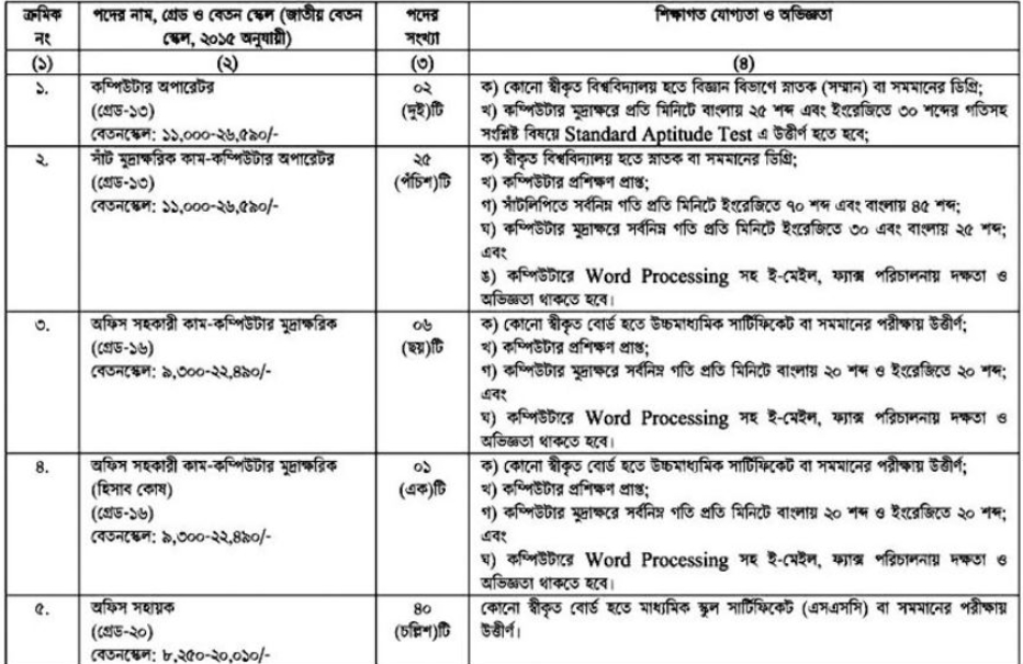 বয়স: ০১ মে ২০২৫ তারিখ ১৮-৩২ বছর। বয়স প্রমাণের ক্ষেত্রে এফিডেভিট গ্রহণযোগ্য হবে না। তবে ২নং এবং ৩ নং পদের ক্ষেত্রে বিভাগীয় প্রার্থীদের জন্য বয়সসীমা ৪০ বছর পর্যন্ত শিথিলযোগ্য।