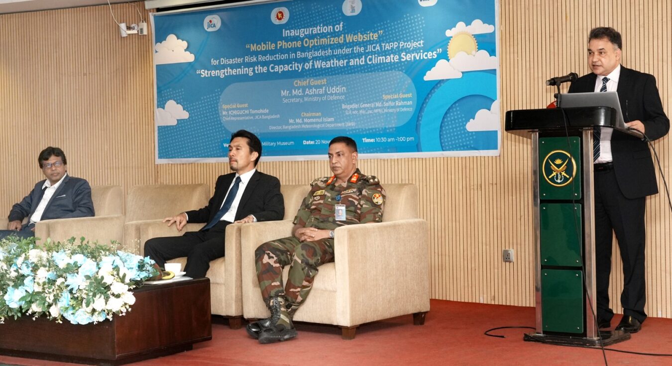 বাংলাদেশ আবহাওয়া অধিদপ্তর (বিএমডি) কর্তৃক আজ (২০ নভেম্বর) ঢাকার বিজয় সরণিতে বাংলাদেশ সামরিক জাদুঘরের মাল্টিপারপাস হলে দুর্যোগ ঝুঁকি হ্রাসে “Mobile Phone Optimized Website” উদ্বোধন করা হেয়েছে। অনুষ্ঠানে প্রতিরক্ষা মন্ত্রণালযের সচিব মোঃ আশরাফ উদ্দিন প্রধান অতিথি হিসেবে উপস্থিত ছিলেন। বিশেষ অতিথি ছিলেন ইচিগুচি তোমোহিদে, চিফ রিপ্রেজেনটেটিভ-জাইকা বাংলাদেশ এবং বিগ্রেডিয়ার জেনারেল মুহম্মদ সাইফুর রহমান, উইং চিফ, উইং-৩, প্রতিরক্ষা মন্ত্রণালয়। অনুষ্ঠানে সভাপতিত্ব করেন মোঃ মমিনুল ইসলাম, পরিচালক, বাংলাদেশ আবহাওয়া অধিদপ্তর। এছাড়া প্রতিরক্ষা মন্ত্রণালয়, বাংলাদেশ আবহাওয়া অধিদপ্তর এবং এই প্রকল্পের বিভিন্ন অংশীজন প্রতিনিধিরা যথা- দুর্যোগ ব্যবস্থাপনা ও ত্রাণ মন্ত্রণালয়, দুর্যোগ ব্যবস্থাপনা অধিদপ্তর, ঘুর্ণিঝড় প্রস্তুতি কর্মসূচি (সিপিপি), কৃষি সম্প্রসারণ অধিদপ্তর, মাধ্যমিক ও উচ্চ শিক্ষা বিভাগ,…