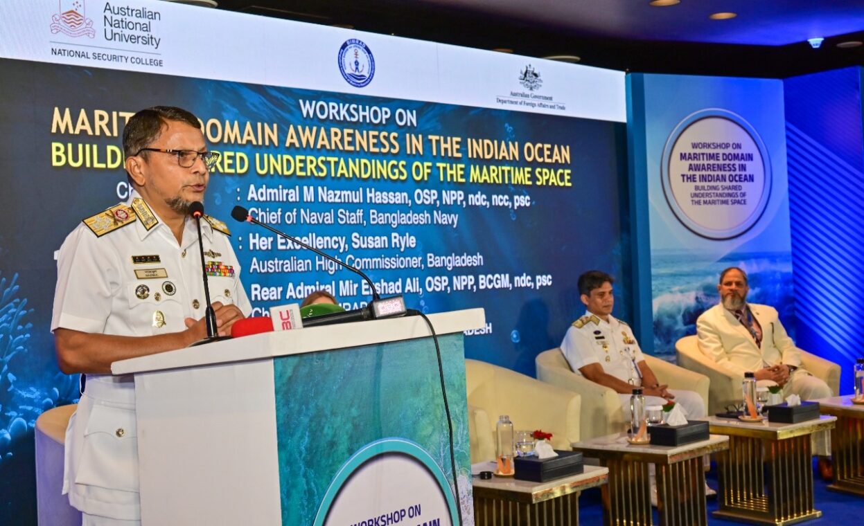 বাংলাদেশ ইনস্টিটিউট অব মেরিটাইম রিসার্চ অ্যান্ড ডেভেলপমেন্ট (BIMRAD) এবং অস্ট্রেলিয়ান ন্যাশনাল ইউনিভার্সিটির ন্যাশনাল সিকিউরিটি কলেজের যৌথ আয়োজনে ‘Maritime Domain Awareness in the Indian Ocean‘ শীর্ষক দুই দিনব্যাপী আন্তর্জাতিক কর্মশালার উদ্বোধনী অনুষ্ঠান আজ হোটেল ইন্টারকন্টিনেন্টাল, ঢাকায় অনুষ্ঠিত হয়েছে। কর্মশালার উদ্বোধনী অনুষ্ঠানে প্রধান অতিথি হিসেবে উপস্থিত ছিলেন বাংলাদেশ নৌবাহিনী প্রধান ও BIMRAD -এর প্রধান পৃষ্ঠপোষক এডমিরাল এম নাজমুল হাসান। এ সময় বাংলাদেশে অস্ট্রেলিয়ার হাইকমিশনার, বাংলাদেশ ইনস্টিটিউট অব মেরিটাইম রিসার্চ অ্যান্ড ডেভেলপমেন্ট (BIMRAD)-এর চেয়ারম্যান ও মহাপরিচালক, সিনিয়র রিসার্চ ফেলো, ন্যাশনাল সিকিউরিটি কলেজ, অস্ট্রেলিয়ান ন্যাশনাল ইউনিভার্সিটি (ANU) এবং বাংলাদেশ, অস্ট্রেলিয়া ও অন্যান্য আঞ্চলিক অংশীদার দেশেসমূহের কর্মকর্তা, নীতিবিশেষজ্ঞ, গবেষক, কূটনৈতিক ও সামুদ্রিক পেশাজীবী উপস্থিত ছিলেন।…