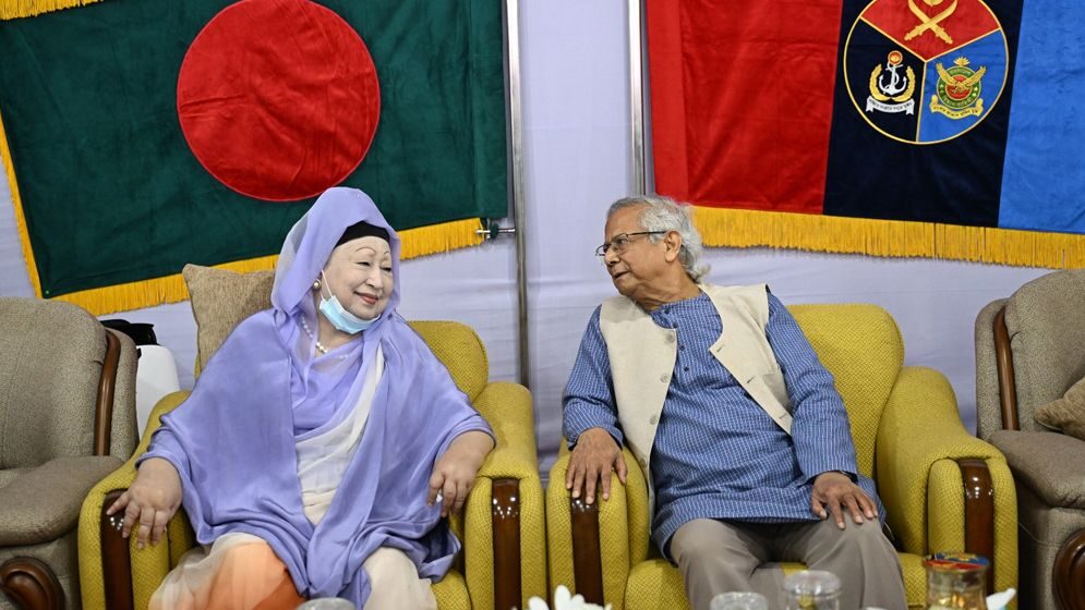 সশস্ত্র বাহিনী দিবসের সংবর্ধনা অনুষ্ঠানে যোগ দিতে ঢাকা সেনানিবাসে যান বিএনপি চেয়ারপারসন খালেদা জিয়া। শুক্রবার বিকাল ৪টায় রাজধানীর গুলশানের বাসভবন ফিরোজা থেকে তিনি রওনা হয়ে সাড়ে ৪টার পর সেনাকুঞ্জে পৌঁছান তিনি। খালেদা জিয়া সেনাকুঞ্জে পৌঁছার পর অন্তর্বর্তীকালীন সরকারের প্রধান উপদেষ্টা ড. মুহাম্মদ ইউনূসের সঙ্গে একান্তে কয়েক মিনিট কথা বলেন। প্রধান উপদেষ্টা এ সময় সাবেক প্রধানমন্ত্রী বেগম খালেদা জিয়ার বর্তমান শারীরিক অবস্থার বিষয়ে খোঁজ নেন এবং তার সুস্থতা কামনা করেন। খালেদা জিয়াও প্রধান উপদেষ্টাকে ধন্যবাদ জানান। তিনি প্রধান উপদেষ্টার সহধর্মিণী আফরোজী ইউনূসের শারীরিক অবস্থার খোঁজ নেন এবং শুভকামনা জানান। খালেদা জিয়ার সঙ্গে ছিলেন তার ছোট ছেলে প্রয়াত আরাফাত রহমান কোকোর স্ত্রী…