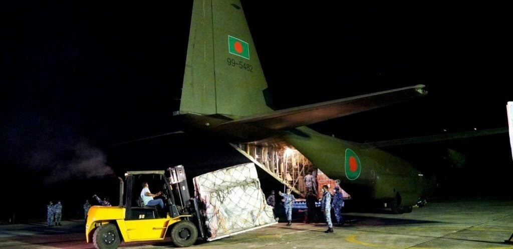 জুমবাংলা ডেস্ক: ক’রোনা প্রতিরোধে এন্টি-এপিডেমিক মেডিকেল সরঞ্জামাদি নিয়ে আজ (২৫ নভেম্বর) চীন থেকে বাংলাদেশ বিমান বাহিনীর একটি সি-১৩০জে পরিবহন বিমান ঢাকায় অবতরণ করেছে। ঢাকার কুর্মিটোলায় বাংলাদেশ বিমান বাহিনী ঘাঁটি বঙ্গবন্ধুতে করোনা সুরক্ষা সামগ্রী ও চিকিৎসা সরঞ্জামাদি গ্রহণ করেন ডাইরেক্টর জেনারেল অব মেডিক্যাল সার্ভিসেস মেজর জেনারেল মো: মাহাবুবুর রহমান। চিকিৎসা সরঞ্জামাদির মধ্যে রয়েছে অক্সিজেন কনসেনট্রেটর, ইনফ্রারেন্ট থার্মোমিটার, পাল্স অক্সিমিটার, কেএন-৯৫ মাস্ক, প্রোটেকটিভ গগলস, ডিসপোজএ্যাবল ফেস শিল্ড, পিপিই প্যারাসুট, হেভি ডিউটিবুট ইত্যাদি। এই সরঞ্জামাদির ২য় চালান আগামী ২৮ নভেম্বর ঢাকায় পৌছাবে। বাংলাদেশ সশস্ত্র বাহিনী ক’রোনাভাইরাস প্রতিরোধকল্পে মাননীয় প্রধানমন্ত্রীর দিক নির্দেশনায় বাংলাদেশ সরকার কর্তৃক প্রকাশিত নীতিমালা অনুসরন করে বিভিন্ন কার্যক্রম পরিচালনা করছে। এরই…