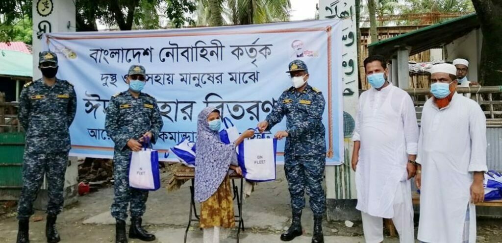 জুমবাংলা ডেস্ক: কক্সবাজার জেলার সেন্ট মার্টিন দ্বীপের স্থানীয় দুস্থ ও অসহায় পরিবারের মাঝে ঈদ উপহার সামগ্রী প্রদান করেছে বাংলাদেশ নৌবাহিনী। আজ (১৭ জুলাই) কমান্ডার বিএন ফ্লীটের অধীনে নৌবাহিনী যুদ্ধজাহাজ বানৌজা স্বাধীনতা সেন্ট মার্টিন দ্বীপের স্থানীয় দুস্থ ও অসহায় ৪০০ পরিবারের মাঝে ঈদের পোশাক ও খাদ্য সহায়তা প্রদান করে। এসময় ঈদ উপহার সামগ্রী হিসেবে শাড়ী, লুঙ্গি, পাঞ্জাবি এবং বাচ্চাদের পোশাক বিতরণ করা হয়। তাছাড়া খাদ্য সহায়তা হিসেবে প্রতিটি পরিবারকে সেমাই, চিনি ও গুড়া দুধ প্রদান করা হয়। দেশের এই সংকটময় পরিস্থিতি মোকাবিলায় প্রত্যন্ত এলাকার অসহায় ও দরিদ্র মানুষের সহায়তায় বাংলাদেশ নৌবাহিনী নিয়মিত এ কার্যক্রম পরিচালনা করে আসছে এবং পরিস্থিতির উন্নতি না…