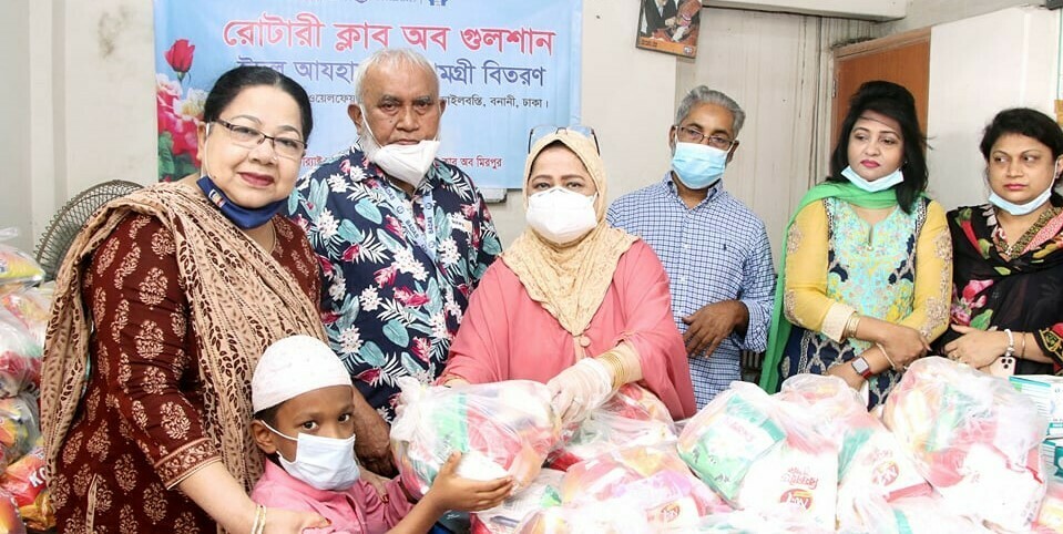 জুমবাংলা ডেস্ক: ঈদ উপলক্ষে রাজধানীর কড়াইল বস্তিতে ছিন্নমূল শিশুদের এবং বারিধারা ডিওএইচএস এলাকায় দুস্থদের মাঝে ঈদ উপহার বিতরণ করেছেন রোটারি ক্লাব অব গুলশানের সদস্যরা। আজ (১৫ জুলাই) শিশু ও অসহায় নারীদের হাতে উপহার সামগ্রী তুলে দেন রোটারি ক্লাব অব গুলশানের প্রেসিডেন্ট এবং শিল্পমন্ত্রী নুরুল মজিদ মাহমুদ হুমায়ূনের সহধর্মিনী নাদিরা মাহমুদ। উপহার সামগ্রী বিতরণকালে তিনি করোনা সংক্রমণ থেকে রক্ষা পেতে সবাইকে ঘরে থাকার আহ্বান জানান। এ সময় নাদিরা মাহমুদ সমাজের সকলকে যার যার জায়গা থেকে অসহায় মানুষকে সহায়তা করতে এগিয়ে আসারও আহ্বান জানান। উপহার সামগ্রী বিতরণকালে অন্যান্যের মধ্যে উপস্থিত ছিলেন পিপি সালমা হোসেন, রোটারেক্ট প্রেসিডেন্ট সরোয়ার হোসেন, রোটারেক্ট পিপি সায়েদ নায়েম,…